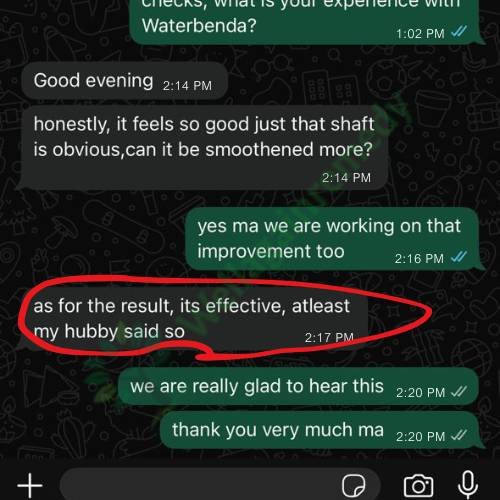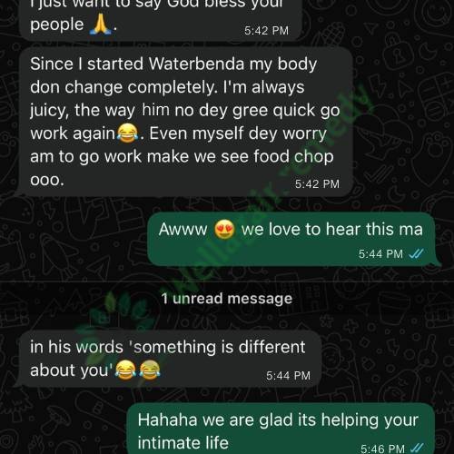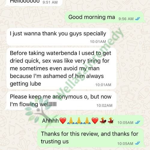 Waterbenda is a natural women’s intimacy booster. It helps gain arousal faster, wetness faster, and longer, and most importantly, confidence in the bedroom knowing your man keeps saying “you are so sweet…😸”